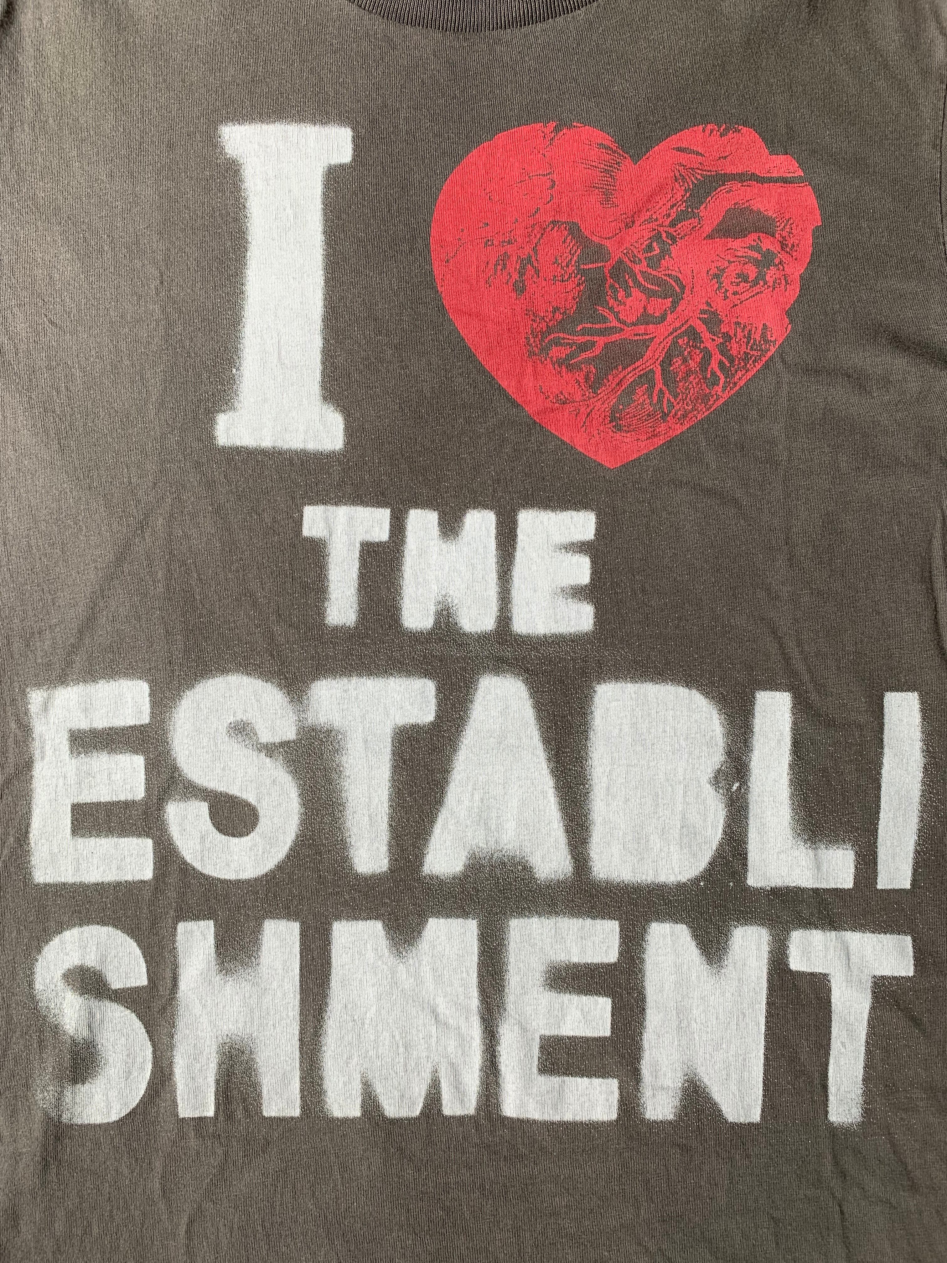 表面にI LOVE THE ESTABLI SHMENT。裏面の首元にはブレイブマンがデザインされています。